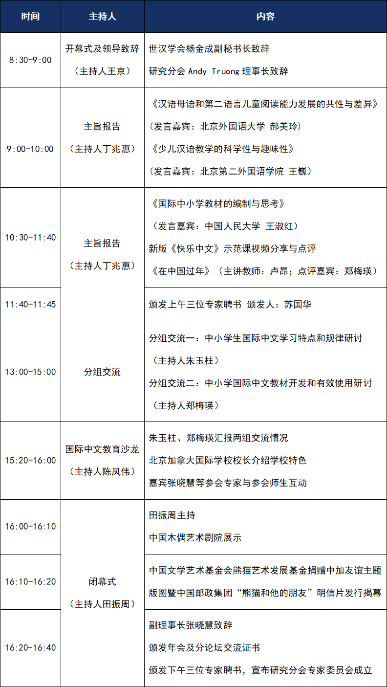 为进一步服务中小学国际中文教师专业发展,推动教学资源建设,加强中小学国际中文教师教学交流,进而助推国际中文教育高质量发展,世界汉语教学学会中小学教育研究分会、北京市教育学会国际中文教育专业委员会将在北京举办“世界汉语教学学会中小学教育研究分会2024年年会暨北京市教育学会2024年学术年会国际中文教育分论坛”。