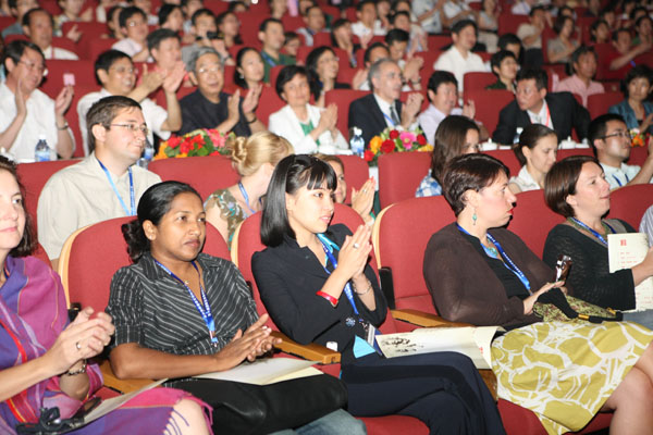 第九届、第十届全国人大常委会副委员长、世界汉语教学学会会长许嘉璐先生在开幕辞中指出,第十届国际汉语教学研讨会是世界汉语教学精英们的“群英会”,也是一次成果展示会。他强调,世界汉语教学学会对汉语教学本身的研究将给正在变革之中的中国教育以润物细无声的影响。中国《国家教育中长期改革和发展规划纲要》的精神之一是中国的教育必须大力改革,要想实现真正的改革必须更大地开放,从某种意义上说,就是要以开放促改革。世界汉语教学就是一个窗口,从这个窗口大踏步走出去,世界各地的朋友又大踏步走进来,因而它应该是中国教育从现在到2020年乃至更远时间,进行改革的缩影和模式。希望通过本次研讨会,进一步鼓舞士气,让国际汉语教育真正从人到教材到观念走向世界,拥抱世界。